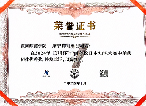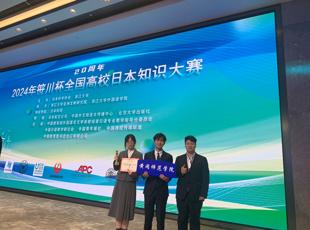 10月26-27日,由浙江大学与日本科学协会共同主办的2024年“笹川杯”全国高校日本知识大赛在浙江大学举行。来自北京大学、南京大学、北京外国语大学、上海外国语大学等全国100余所高校的294名员工参加本次比赛。经过激烈的预赛和决赛,公司日语专业202102班康宁同学荣获个人二等奖,康宁、陈钊朝、刘旭辉三位参赛选手共同斩获团体赛优秀奖。