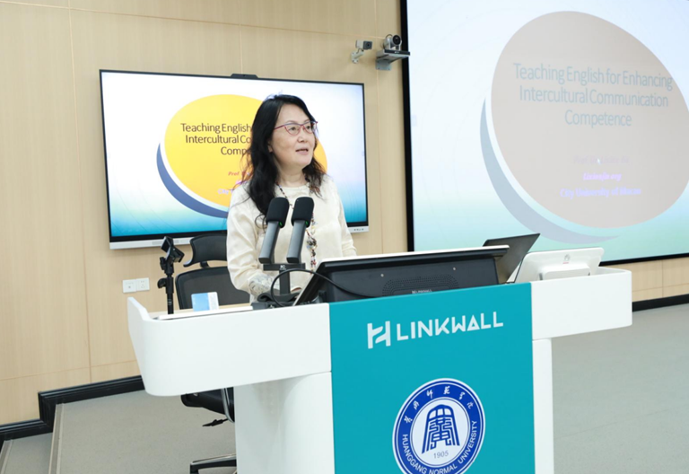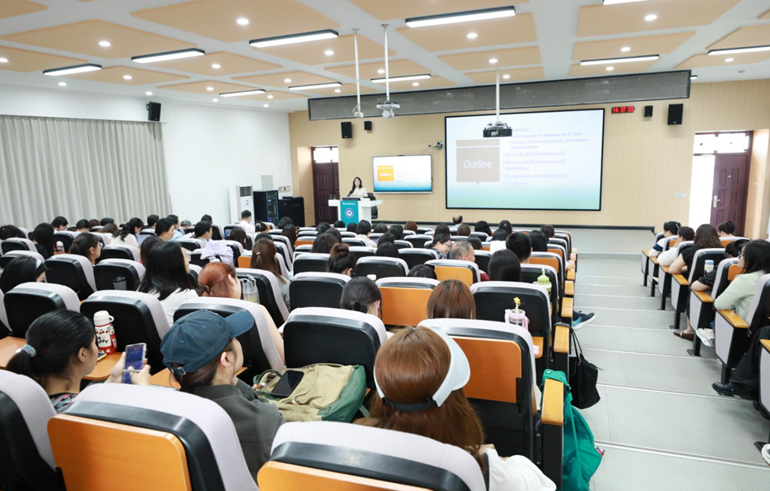 报告分析并强调了在教学实践中培养跨文化交际能力(ICC)的必要性和重要性。金教授结合自身研究经历,介绍了英语教学中跨文化交际能力的培养方法与实施策略。她指出当前跨文化交际知识与技能的教学过程中面临的严峻挑战,并探讨了在AI大背景下,如何进行跨文化交际训练以及深入开展外语教学改革的应对策略。