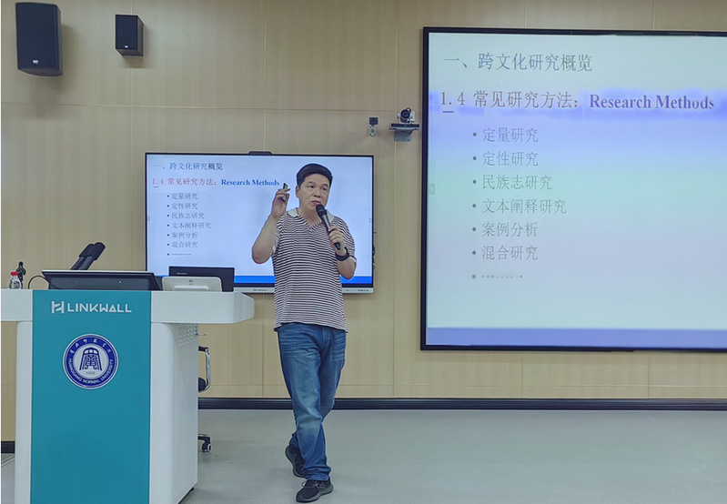报告从跨文化研究视角详细介绍了科研项目的选题分类与研究方法,分享了文献综述撰写技巧,并结合研究实例深入剖析了科研项目与学术论文选题、设计的关键要点。彭教授结合跨文化研究领域的发展趋势,鼓励与会师生拓宽学术视野,积极尝试新的研究方法,产出新的研究成果。彭教授还与师生积极互动,耐心细致地解答了大家提出的问题。