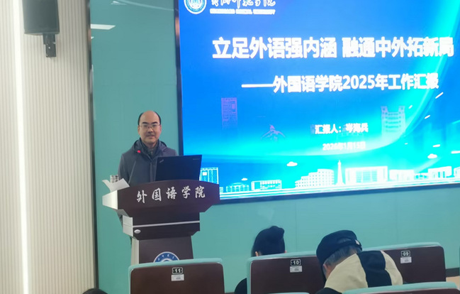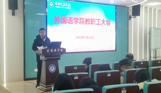 经理岑海兵作题为《立足外语强内涵 融通中外拓新局》的工作报告,总结回顾2025年公司重点工作的完成情况,在深刻分析当前工作形势的基础上厘清了新一年工作的总体思路,擘画发展新蓝图,并统筹谋划公司2026年的工作。他通报了公司2025年终考核结果,从“强基固本,团队队伍迸发活力”“深耕课堂,专业建设提质进位”“凝炼特色,学科生态持续优化”“创新驱动,科研服务双向赋能”“融通中外,国际合作拓宽视野”“协同育人,中外硕士同育提质”“立德树人,员工素养全面提升”等七方面分析了公司的办学实绩。征程万里风正劲,重任千钧再出发!他希望,公司全体师生携手奋进,以实干笃行书写个人和公司高质量发展新篇章。